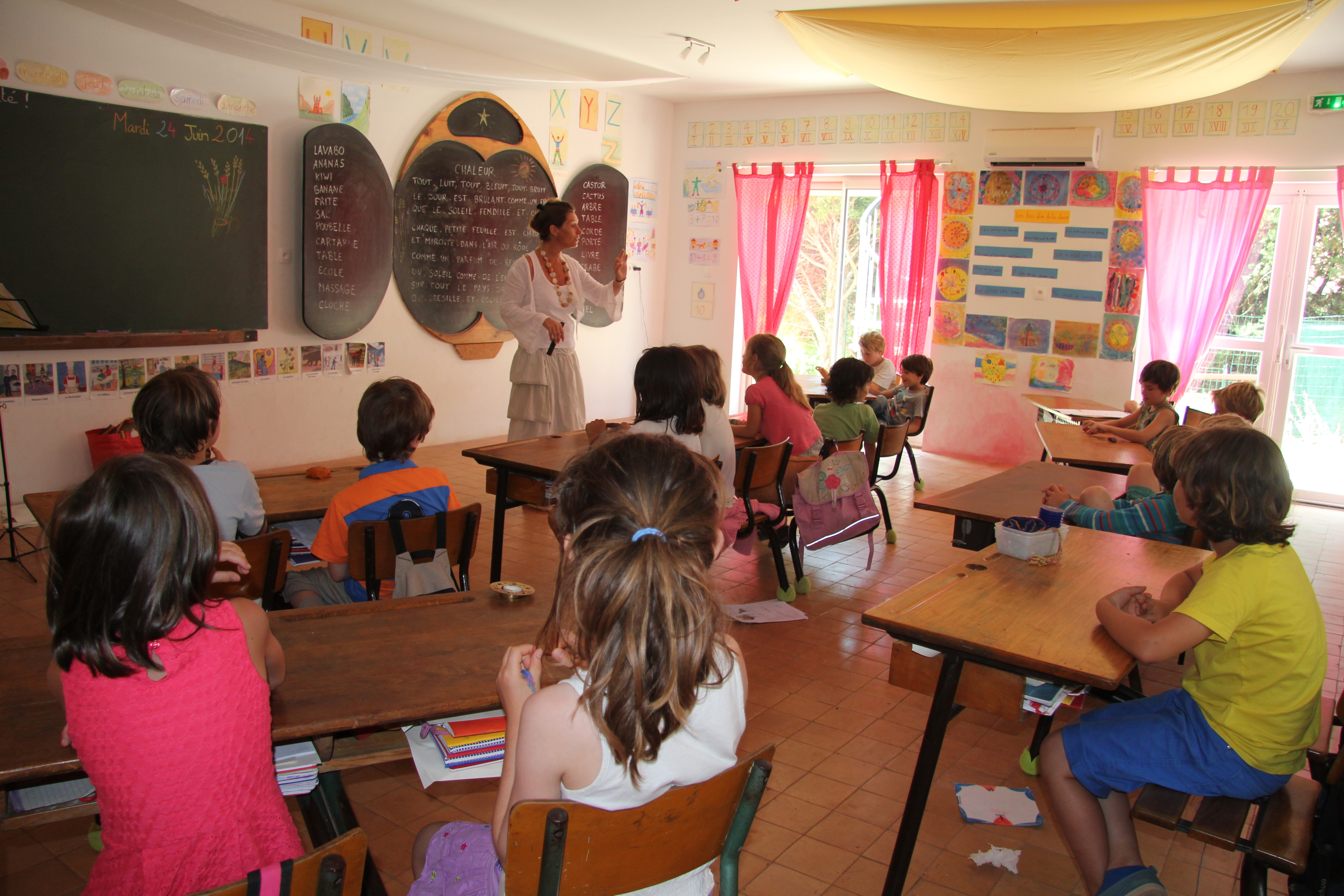 Dans la salle de classe où le cours de français a laissé place au cours d’anglais, une chanson s’élève. Les enfants prennent un plaisir non dissimulé à discourir avec leur enseignante. D’autant plus facilement que, sur les bancs, quelques élèves manquent déjà à l’appel en cette fin d’année. La classe du CE2 au CM2 est en effet partie étudier la géographie dans le Luberon. L’ambiance est détendue pour les restants. « Mes deux enfants courent tous les matins pour se rendre à l'école », affirme Céline Siewert-Genois, une maman d’origine allemande, qui a elle-même fréquenté les bancs d’une école Steiner berlinoise.