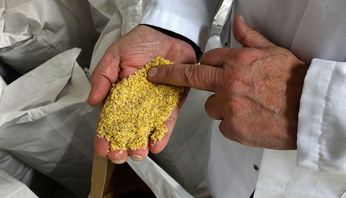 « Quand j’ai repris le moulin, je me suis rendu compte qu’il y avait beaucoup de produits chimiques utilisés. Je me suis tout de suite orienté vers d’autres méthodes de production », se souvient Édouard Meckert, 73 ans, installé dans une salle de réunion aux étagères remplies de catalogues et d’échantillons maison. Fils de vignerons, œnologue de formation, il se lance alors en pionnier dans l’aventure du bio pour la production de farine, seule activité du moulin à cette époque. L’entreprise n’emploie à cette époque que trois personnes : lui, sa femme et un salarié. « Nous nous sommes spécialisés dans les produits biologiques à base d’épeautre et de petit épeautre, des céréales oubliées que nous avons contribué à réhabiliter. Elles ont de nombreux avantages : elles sont très riches en vitamines et en oligo-éléments, elles acceptent mal les engrais et elles ont une enveloppe épaisse qui les rend quasiment impolluables. » (Photos ci-dessous : germes de blé.)